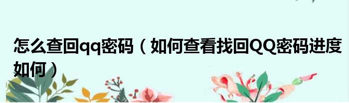 关于怎么查回qq密码,如何查看找回QQ密码进度如何的介绍到此结束,希望对大家有所帮助。