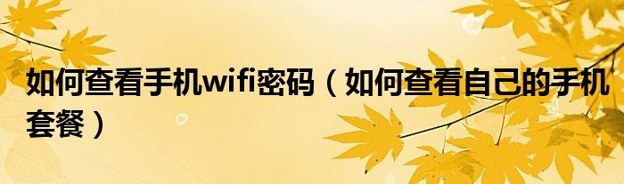 关于如何查看手机wifi密码,如何查看自己的手机套餐的介绍到此结束,希望对大家有所帮助。