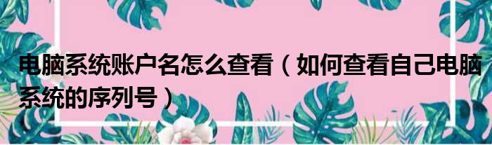 大家好,小纵来为大家解答以上问题。电脑系统账户名怎么查看,如何查看自己电脑系统的序列号这个很多人还不清楚,现在一起跟着小编来瞧瞧吧!