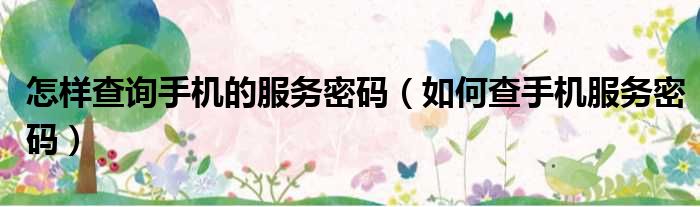 关于怎样查询手机的服务密码,如何查手机服务密码的介绍到此结束,希望对大家有所帮助。