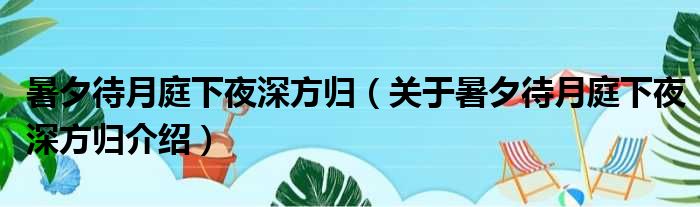 大家好,小钱来为大家解答以上的问题。暑夕待月庭下夜深方归,关于暑夕待月庭下夜深方归介绍这个很多人还不知道,现在让我们一起来看看吧!