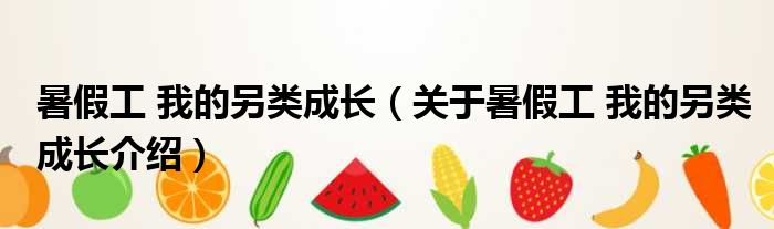 大家好,小钱来为大家解答以上的问题。暑假工,我的另类成长,关于暑假工,我的另类成长介绍这个很多人还不知道,现在让我们一起来看看吧!
