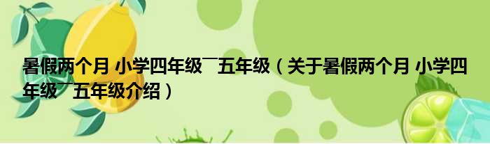 关于暑假两个月 小学四年级――五年级到此分享完毕,希望能帮助到您。
