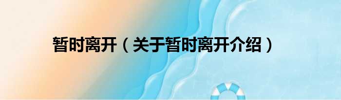 大家好,小钱来为大家解答以上的问题。暂时离开,关于暂时离开介绍这个很多人还不知道,现在让我们一起来看看吧!