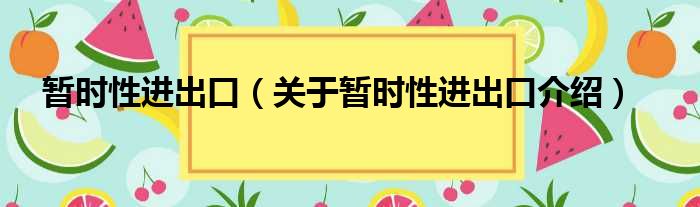 大家好,小钱来为大家解答以上的问题。暂时性进出口,关于暂时性进出口介绍这个很多人还不知道,现在让我们一起来看看吧!