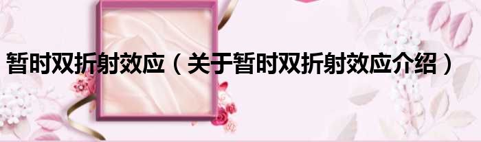 大家好,小钱来为大家解答以上的问题。暂时双折射效应,关于暂时双折射效应介绍这个很多人还不知道,现在让我们一起来看看吧!