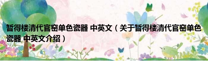 关于暂得楼清代官窑单色瓷器 中英文到此分享完毕,希望能帮助到您。