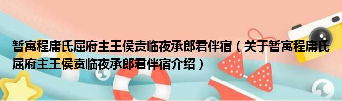 关于暂寓程庸氏屈府主王侯贲临夜承郎君伴宿到此分享完毕,希望能帮助到您。