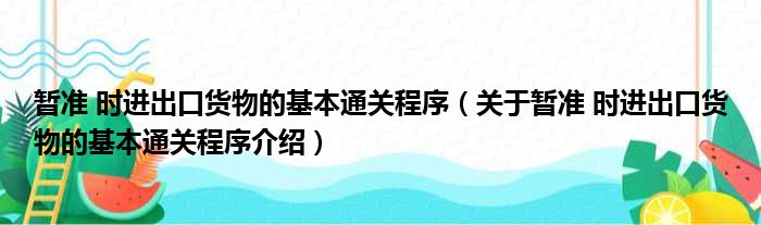 关于暂准 时进出口货物的基本通关程序到此分享完毕,希望能帮助到您。