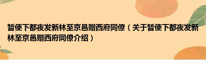 关于暂使下都夜发新林至京邑赠西府同僚到此分享完毕,希望能帮助到您。