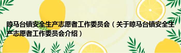 关于晾马台镇安全生产志愿者工作委员会到此分享完毕,希望能帮助到您。