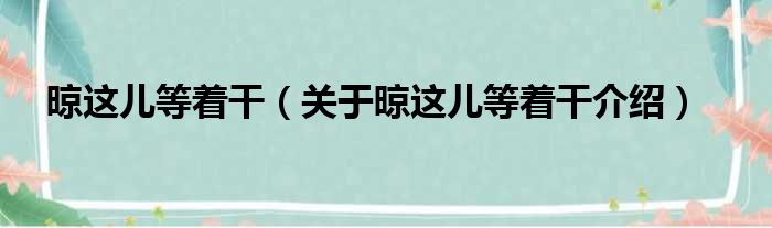 免责声明:本文由用户上传,如有侵权请联系删除!大家好,小钱来为大家解答以上的问题。晾这儿等着干,关于晾这儿等着干介绍这个很多人还不知道,现在让我们一起来看看吧!