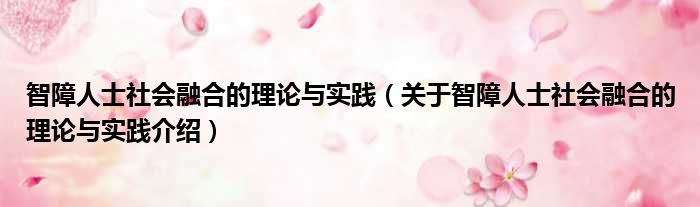 关于智障人士社会融合的理论与实践到此分享完毕,希望能帮助到您。