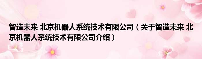 关于智造未来 北京机器人系统技术有限公司到此分享完毕,希望能帮助到您。