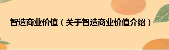 免责声明:本文由用户上传,如有侵权请联系删除!大家好,小钱来为大家解答以上的问题。智造商业价值,关于智造商业价值介绍这个很多人还不知道,现在让我们一起来看看吧!