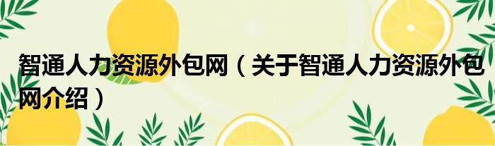 关于智通人力资源外包网到此分享完毕,希望能帮助到您。