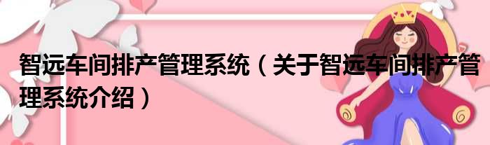 大家好,小钱来为大家解答以上的问题。智远车间排产管理系统,关于智远车间排产管理系统介绍这个很多人还不知道,现在让我们一起来看看吧!