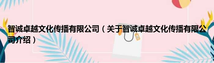 关于智诚卓越文化传播有限公司到此分享完毕,希望能帮助到您。