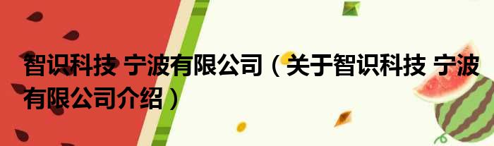 关于智识科技 宁波有限公司到此分享完毕,希望能帮助到您。