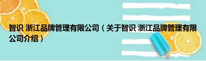 大家好,小钱来为大家解答以上的问题。智识 浙江品牌管理有限公司,关于智识 浙江品牌管理有限公司介绍这个很多人还不知道,现在让我们一起来看看吧!