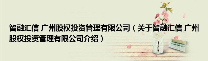 关于智融汇信 广州股权投资管理有限公司到此分享完毕,希望能帮助到您。