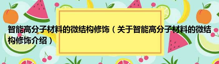 关于智能高分子材料的微结构修饰到此分享完毕,希望能帮助到您。
