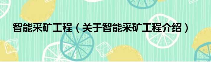 1、 智能采矿工程是中国普通高等学校本科专业。