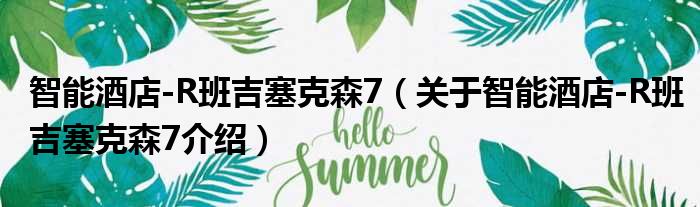 免责声明:本文由用户上传,如有侵权请联系删除!大家好,小钱来为大家解答以上的问题。智能酒店-R班吉塞克森7,关于智能酒店-R班吉塞克森7介绍这个很多人还不知道,现在让我们一起来看看吧!