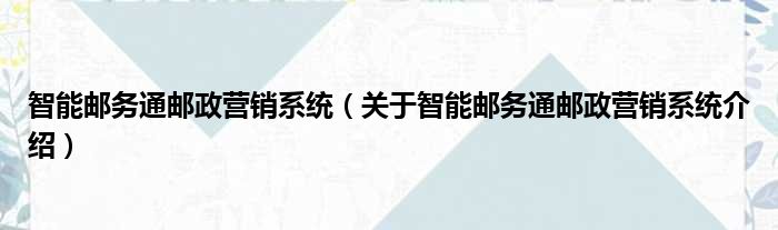 1、 系统简介:智能邮务通邮政营销系统;简称“智能邮务通”,是依托先进的无线通讯网络和信息技术的实时、动态的营销工具,分营销移动平台和智能管理平台两部分。