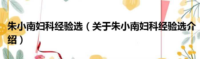 1、 《朱小南妇科经验选》是2005年人民卫生出版社出版的图书,作者是朱荣达。