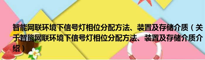 关于智能网联环境下信号灯相位分配方法、装置及存储介质到此分享完毕,希望能帮助到您。