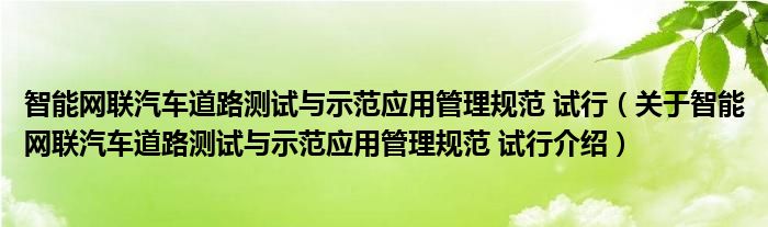 大家好,小钱来为大家解答以上的问题。智能网联汽车道路测试与示范应用管理规范 试行,关于智能网联汽车道路测试与示范应用管理规范 试行介绍这个很多人还不知道,现在让我们一起来看看吧!