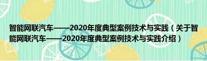大家好,小钱来为大家解答以上的问题。智能网联汽车——2020年度典型案例技术与实践,关于智能网联汽车——2020年度典型案例技术与实践介绍这个很多人还不知道,现在让我们一起来看看吧!