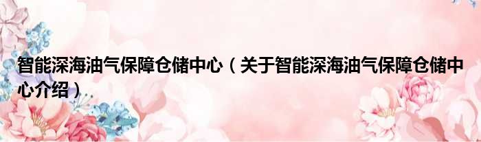 关于智能深海油气保障仓储中心到此分享完毕,希望能帮助到您。