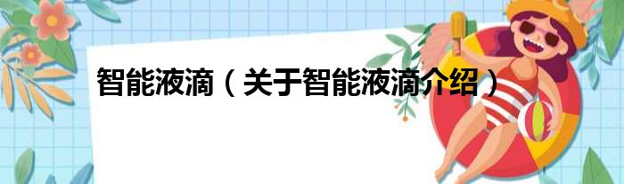免责声明:本文由用户上传,如有侵权请联系删除!大家好,小钱来为大家解答以上的问题。智能液滴,关于智能液滴介绍这个很多人还不知道,现在让我们一起来看看吧!