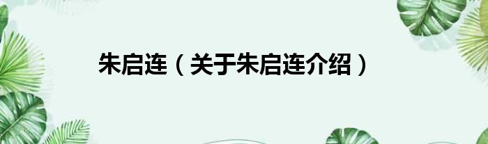 免责声明:本文由用户上传,如有侵权请联系删除!大家好,小钱来为大家解答以上的问题。朱启连,关于朱启连介绍这个很多人还不知道,现在让我们一起来看看吧!