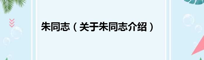 免责声明:本文由用户上传,如有侵权请联系删除!大家好,小钱来为大家解答以上的问题。朱同志,关于朱同志介绍这个很多人还不知道,现在让我们一起来看看吧!
