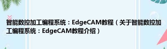 免责声明:本文由用户上传,如有侵权请联系删除!大家好,小钱来为大家解答以上的问题。智能数控加工编程系统:EdgeCAM教程,关于智能数控加工编程系统:EdgeCAM教程介绍这个很多人还不知道,现在让我们一起来看看吧!