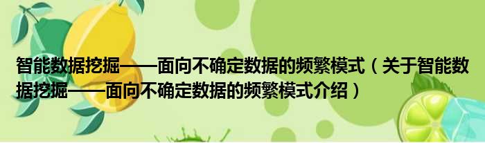 大家好,小钱来为大家解答以上的问题。智能数据挖掘——面向不确定数据的频繁模式,关于智能数据挖掘——面向不确定数据的频繁模式介绍这个很多人还不知道,现在让我们一起来看看吧!