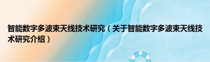 免责声明:本文由用户上传,如有侵权请联系删除!大家好,小钱来为大家解答以上的问题。智能数字多波束天线技术研究,关于智能数字多波束天线技术研究介绍这个很多人还不知道,现在让我们一起来看看吧!