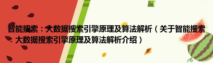 大家好,小钱来为大家解答以上的问题。智能搜索:大数据搜索引擎原理及算法解析,关于智能搜索:大数据搜索引擎原理及算法解析介绍这个很多人还不知道,现在让我们一起来看看吧!