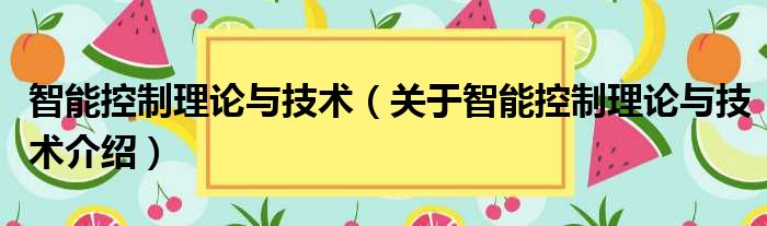 大家好,小钱来为大家解答以上的问题。智能控制理论与技术,关于智能控制理论与技术介绍这个很多人还不知道,现在让我们一起来看看吧!