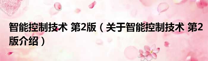免责声明:本文由用户上传,如有侵权请联系删除!大家好,小钱来为大家解答以上的问题。智能控制技术 第2版,关于智能控制技术 第2版介绍这个很多人还不知道,现在让我们一起来看看吧!