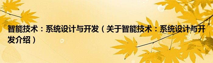 大家好,小钱来为大家解答以上的问题。智能技术:系统设计与开发,关于智能技术:系统设计与开发介绍这个很多人还不知道,现在让我们一起来看看吧!