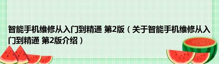 1、 《智能手机维修从入门到精通(第2版)》是2017年5月清华大学出版社出版的图书。