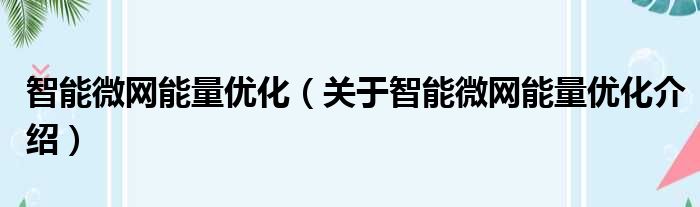 免责声明:本文由用户上传,如有侵权请联系删除!大家好,小钱来为大家解答以上的问题。智能微网能量优化,关于智能微网能量优化介绍这个很多人还不知道,现在让我们一起来看看吧!