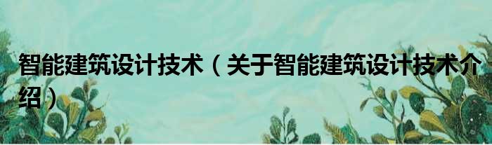 大家好,小钱来为大家解答以上的问题。智能建筑设计技术,关于智能建筑设计技术介绍这个很多人还不知道,现在让我们一起来看看吧!
