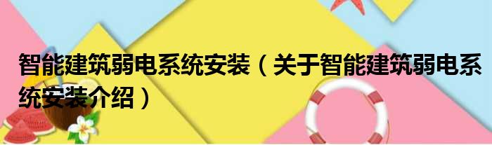 免责声明:本文由用户上传,如有侵权请联系删除!大家好,小钱来为大家解答以上的问题。智能建筑弱电系统安装,关于智能建筑弱电系统安装介绍这个很多人还不知道,现在让我们一起来看看吧!