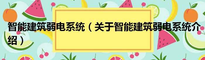 关于智能建筑弱电系统到此分享完毕,希望能帮助到您。