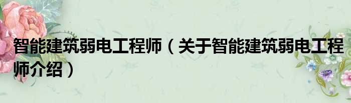 大家好,小钱来为大家解答以上的问题。智能建筑弱电工程师,关于智能建筑弱电工程师介绍这个很多人还不知道,现在让我们一起来看看吧!